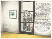 This is the second piece from the Watari-Um Contemporary Museum in Tokyo, done on a recent drawing trip to Asia. The first was about the John Lurie exhibition (see notes for strip #502), this strip features the recurring writer Emit Hopper, who shows up sporadically in All Over Coffee. |
